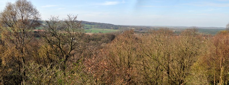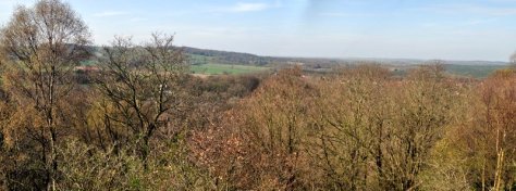 The climb to the top of Kinver Edge is quite fierce, and the slopes are very steep indeed. But the view from the top is worth it, looking out over Staffordshire (and Wolverhampton and Dudley) to the north, Shropshire to the west, Worcestershire and Warwickshire to the east, and south towards Worcester, the Malvern Hills, and Severn Estuary beyond. It was a little hazy today but nevertheless we had some good views.