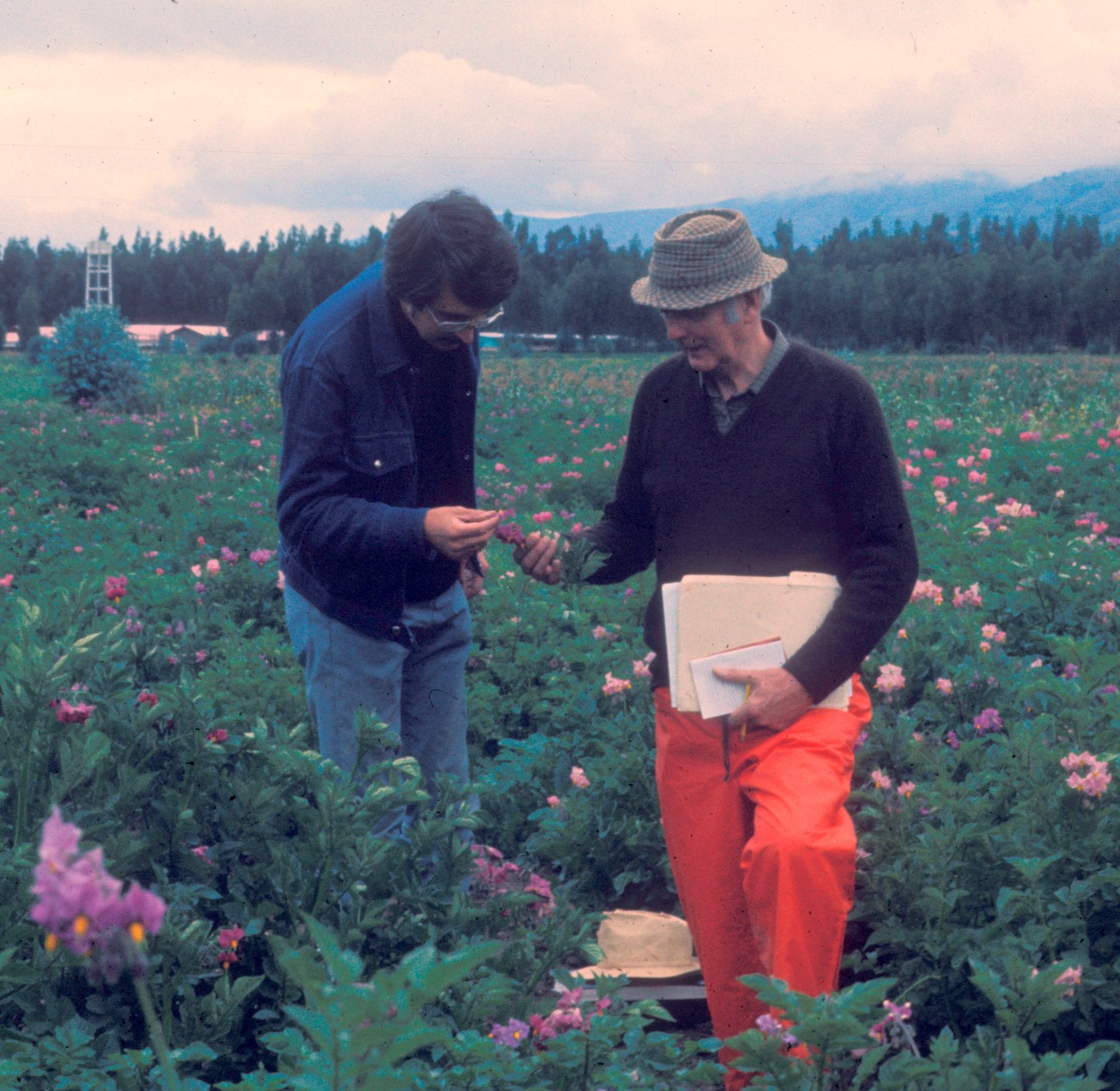 Mike Jackson and Jack Hawkes in the CIP potato germplasm collection, Huancayo, central Peru in early 1974