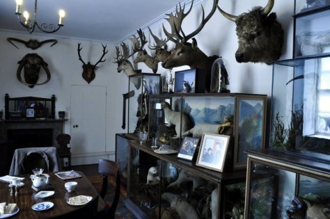 In the entrance hall and lobby there is a number of stuffed heads of longhorn cattle that were once farmed on the estate. In fact, the house is full of stuffed heads of deer – they are everywhere – and throughout the house there are dozens of glass cases of stuffed birds, mainly of British origin, but also fine examples from around the world. It’s a taxidermist’s paradise.
