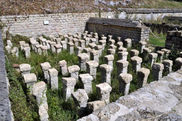 These pillars supported a floor. Hot air passed through this underfloor space and heated the floor above.