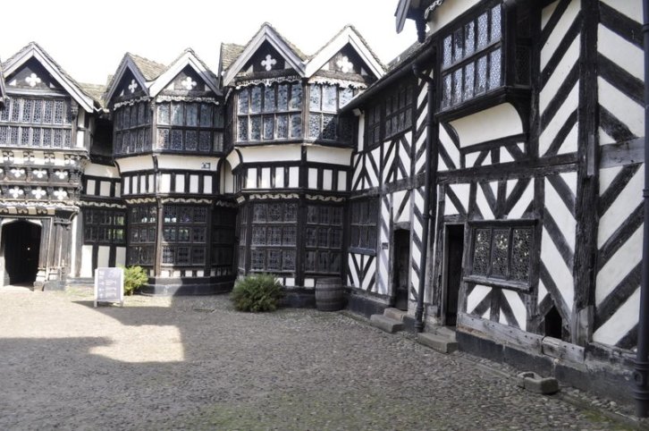 The windows of the Great Hall (1) and Withdrawing Room (5) from the courtyard.