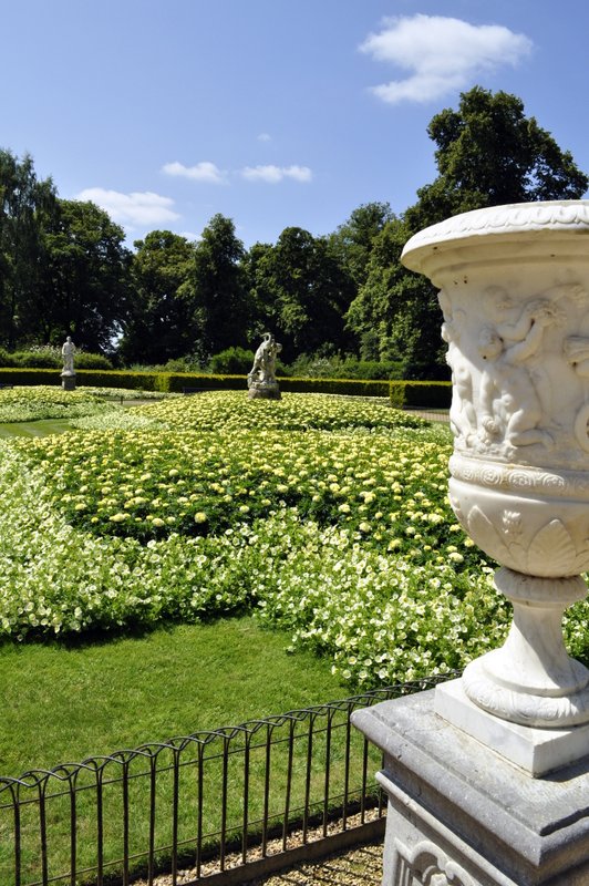 A fine example of the many flower beds, statuary and garden furniture found all around the Waddesdon park