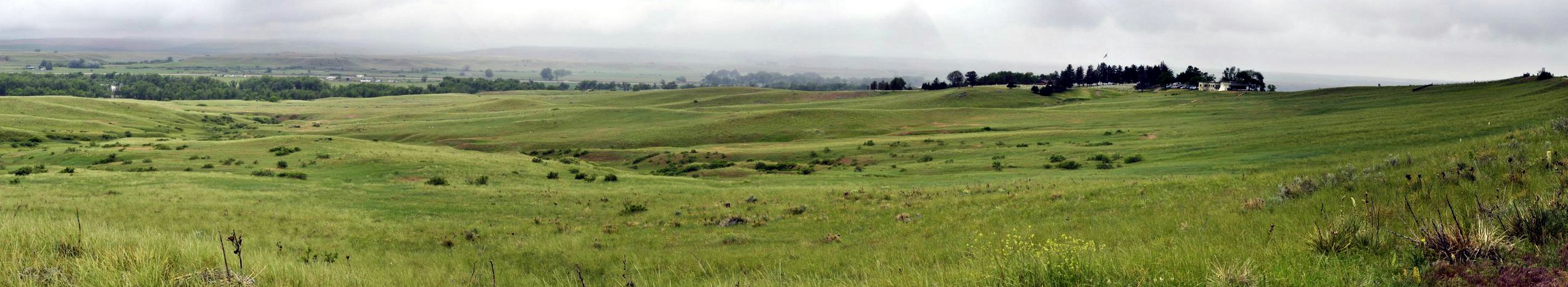 A panorama of the battlefield site from Sitting Bull’s camp on the left (near present-day Garryowen) to Last Stand Hill on the right, marked by the memorial.