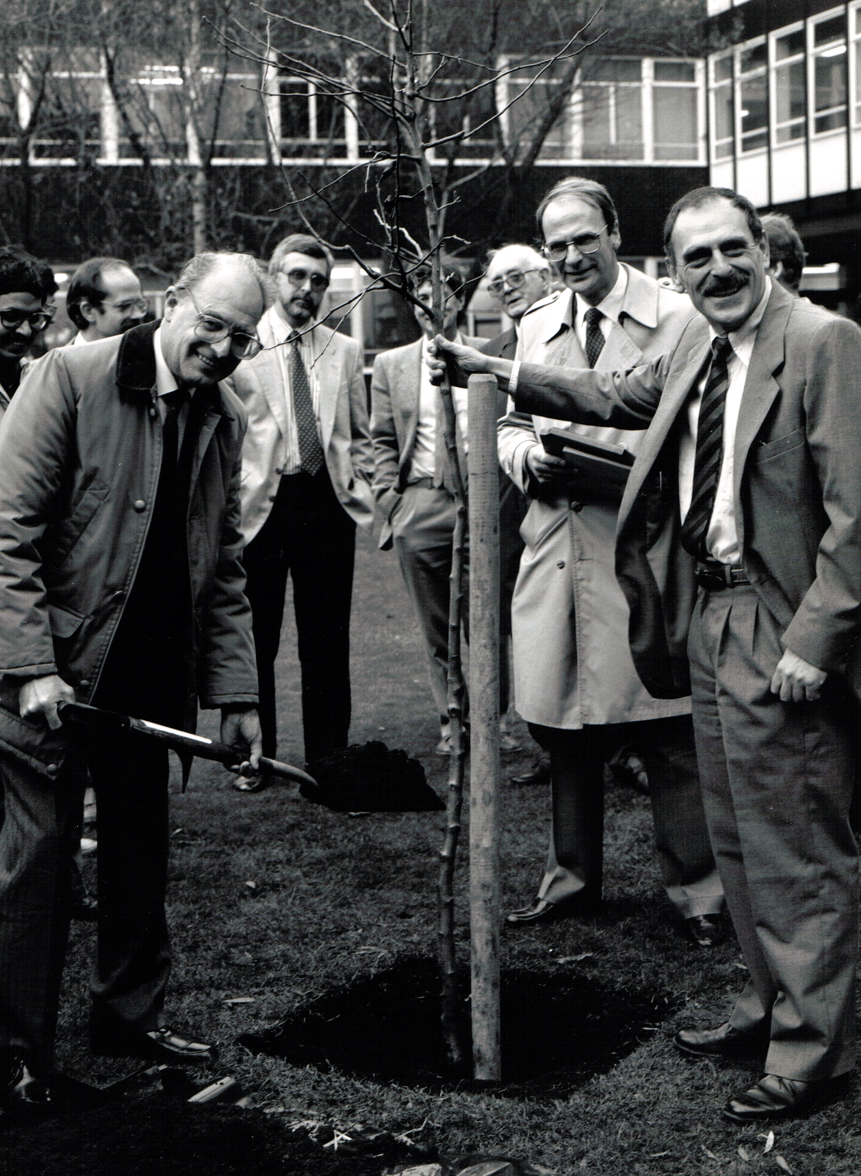 L to R: Richard Lester (behind), Professor Ray Smallman, (Vice Principal), Mike Jackson, Brian Ford-Lloyd, Professor Jack Hawkes, Professor Jim Callow, Professor Trevor Williams