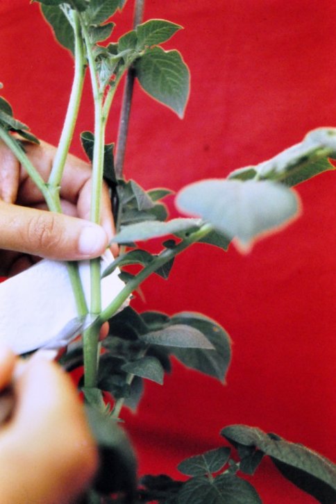 Each stem cutting is carefully removed, using a blade disinfected between mother plants.
