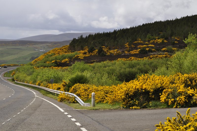 The hills were golden with gorse (and broom), south of Wick on the northeast coast