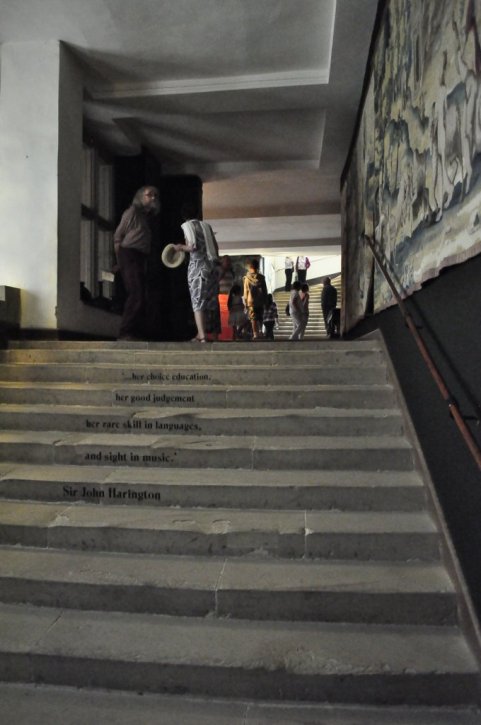 The main stone staircase, looking up to the second floor.
