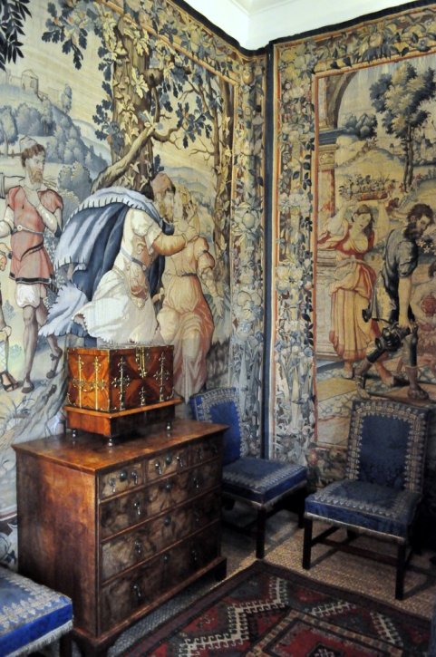 Tapestries in the Blue Bedroom.