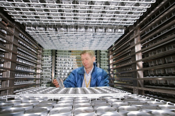 Dr Ruaraidh Sackville Hamilton examines seed samples in aluminium cans in the IRG Base Collection.