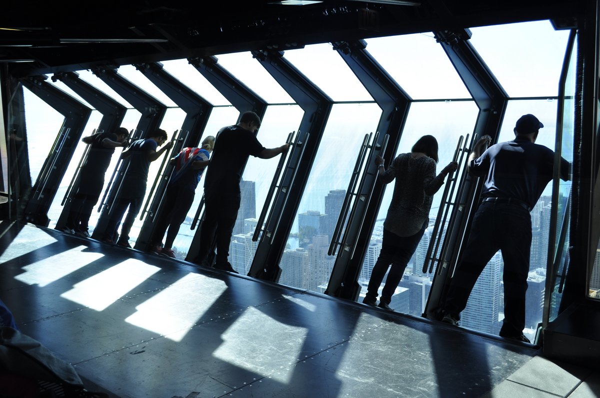 First thing on the Wednesday morning we headed to the John Hancock Center, expecting to find a large number of like-minded tourists aiming for the top. I’d read some horrendous reviews indicating that it could take more than 80 minutes waiting for a lift to the top. I’d already purchased tickets online (USD19 each).