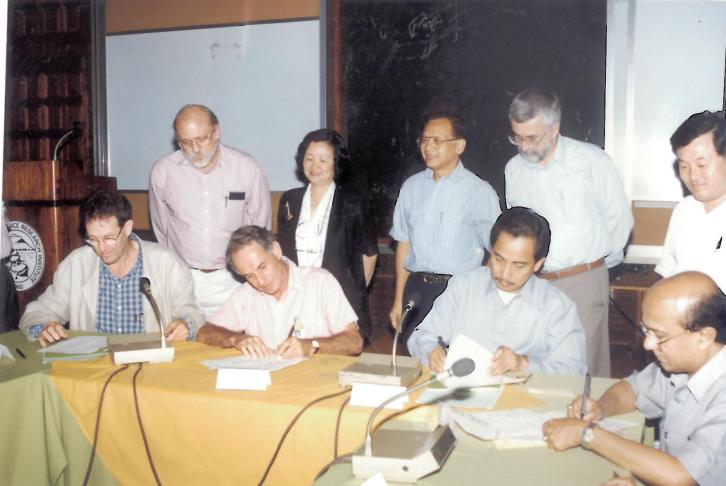 Sitting L to R: Ken Fischer, George Rothschild, William Dar (PCARRD), ??; Standing L to R: Bob, Kwanchai Gomez, Nanding Bernardo, Mike Jackson, ?? (Korea).