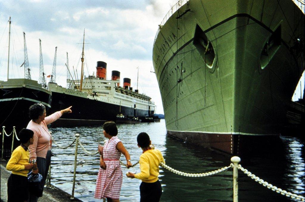 That’s the RMS Queen Mary in the distance, and green-hulled RMS Caronia close-by.