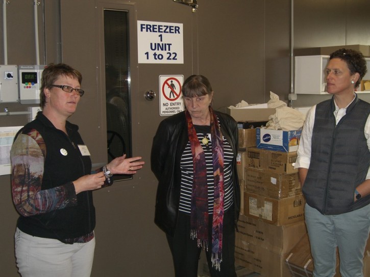 Sally Norton describes the genebank set-up, while Dr Jean Hanson, genebank manager from ILRI in Addis Ababa listens on..