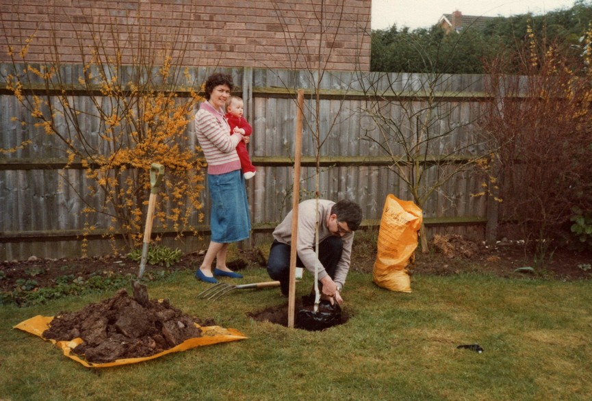 This birch was just a young sapling, maybe six feet tall (and perhaps five years old) when I collected it from one of our local garden centers, Webbs of Wychbold, just a few miles south of Bromsgrove on the way to the nearest junction with the M5 motorway. In 1983, I was driving a Mark III Ford Escort, and I was able to fit the tree inside, with the pot in the passenger foot well, and the trunk and few branches stretching back over the seats towards the tailgate.