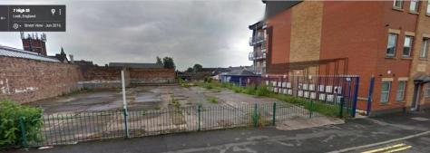 The vacant lot where Peppers of Leek once stood. The new building to the right occupies the site of the former Grand Cinema.
