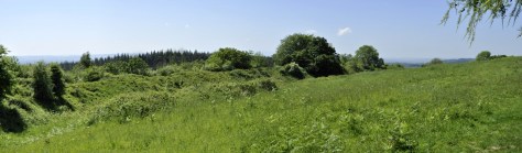 The 360° views from Croft Ambrey are truly stunning: south to the Black Mountains of South Wales; east to the Malverns in Worcestershire; northwest to Clee Hill; and west into the border hills between England and Wales. The climb (not steep) to the summit is really worth the effort. Despite the heat of the day, there was a pleasant breeze taking the edge off it.