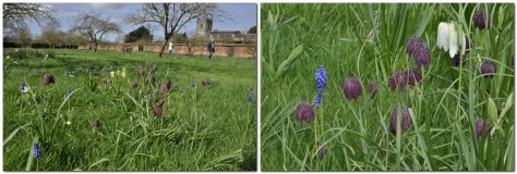 In the orchard, there was a carpet of purple and white fritillaries under the apple trees (just about to come into flower) mixed with primroses and grape hyacinths.