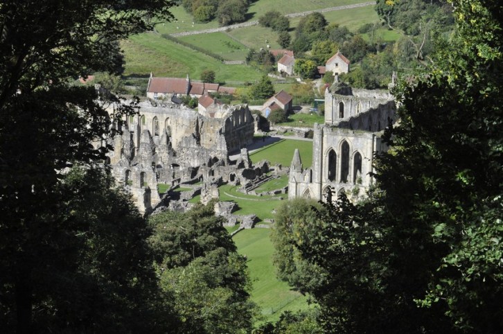 The semi-circular end of the Chapter House can be seen clearly next to the church