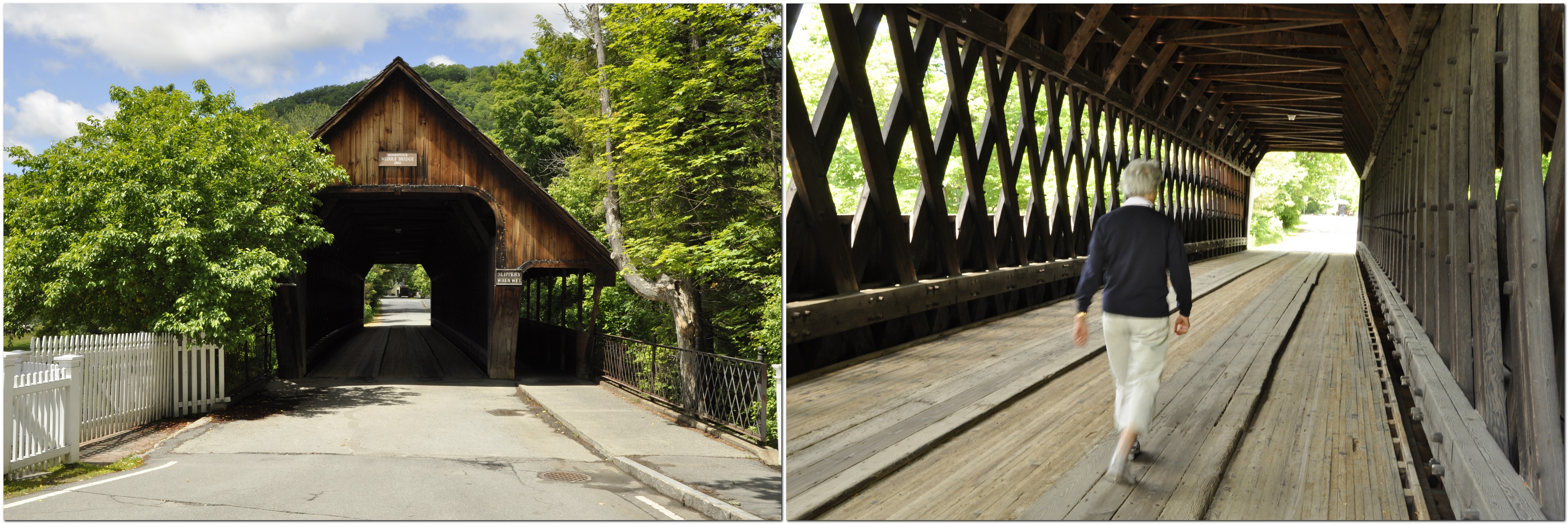 Once in Vermont we passed through a pretty town named Woodstock. No, not that one – that’s in NY. There was an interesting covered bridge, constructed in 1969 to replace an iron one that had been put across the river in 1877. Apparently this wooden construction was cheaper than other options.