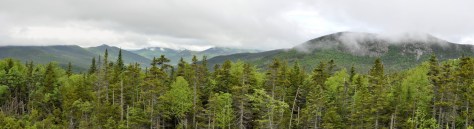 We headed west to the Kancamagus Highway through the southern part of the White Mountains of New Hampshire, and a slow climb to reach the the pass at 2855 feet. The cloud level was quite low, and at some scenic overlooks there was sometimes very little to see. But luck was on our side, and we did have some spectacular views in all directions, particularly at Pemigewasset Overlook northwards.