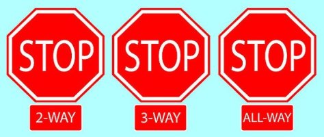 Roundabouts are common in the UK. Near my home in Bromsgrove there are five within the space of 2 miles. Not so in the USA. Instead there of full stop, all way junctions, governed by a particular road etiquette: the first vehicle arriving at the junction gets to manoeuvre first, but only after coming to a full stop.