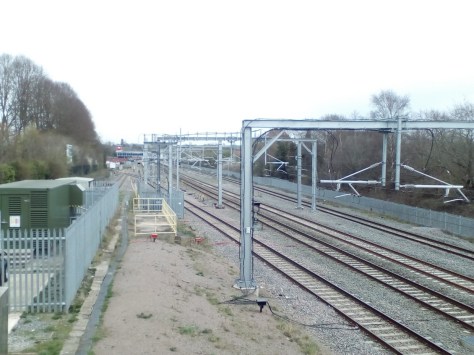 Looking north towards the new station at Bromsgrove, that was ‘electrified’ in 2017.