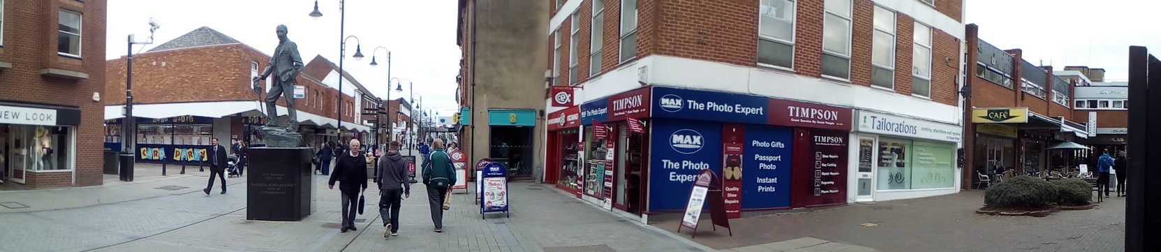 The statue of Bromsgrove poet AE Housman in the center of the High Street.