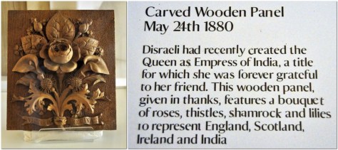 In a final room, a number of personal gifts from Queen Victoria to Disraeli are on display. Disraeli had become a great favorite of the Queen especially since, in 1876, he introduced the Royal Titles Act which conferred on her the title of Empress of India.
