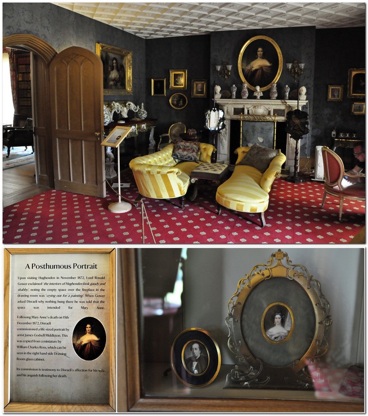 Above the fireplace in the Drawing Room is a large portrait of Mary Anne that Disraeli commissioned after her death in 1872. It was based on a miniature that is displayed in one of the cabinets.