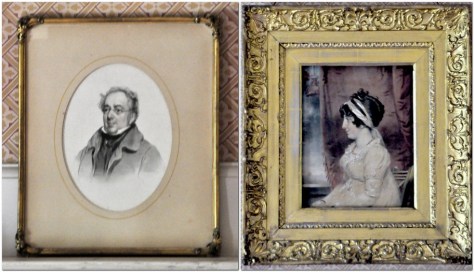 This room is more or less as it was in Disraeli’s time, with the original furniture. On the mantelpiece are portraits of his parents, Isaac and Maria.