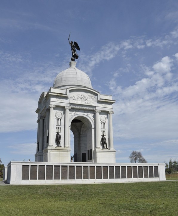 Pennsylvania Monument, the largest on the battlefield, recording the names of every soldier who served at Gettysburg, PA