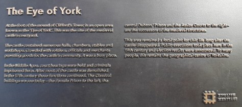 Clifford’s Tower stands atop a very steep mound – the motte, and until recently visitors could only enter and gaze up at the blank walls. That is until English Heritage constructed a framework inside that takes visitors on to the roof and affording those panoramic views over the city.