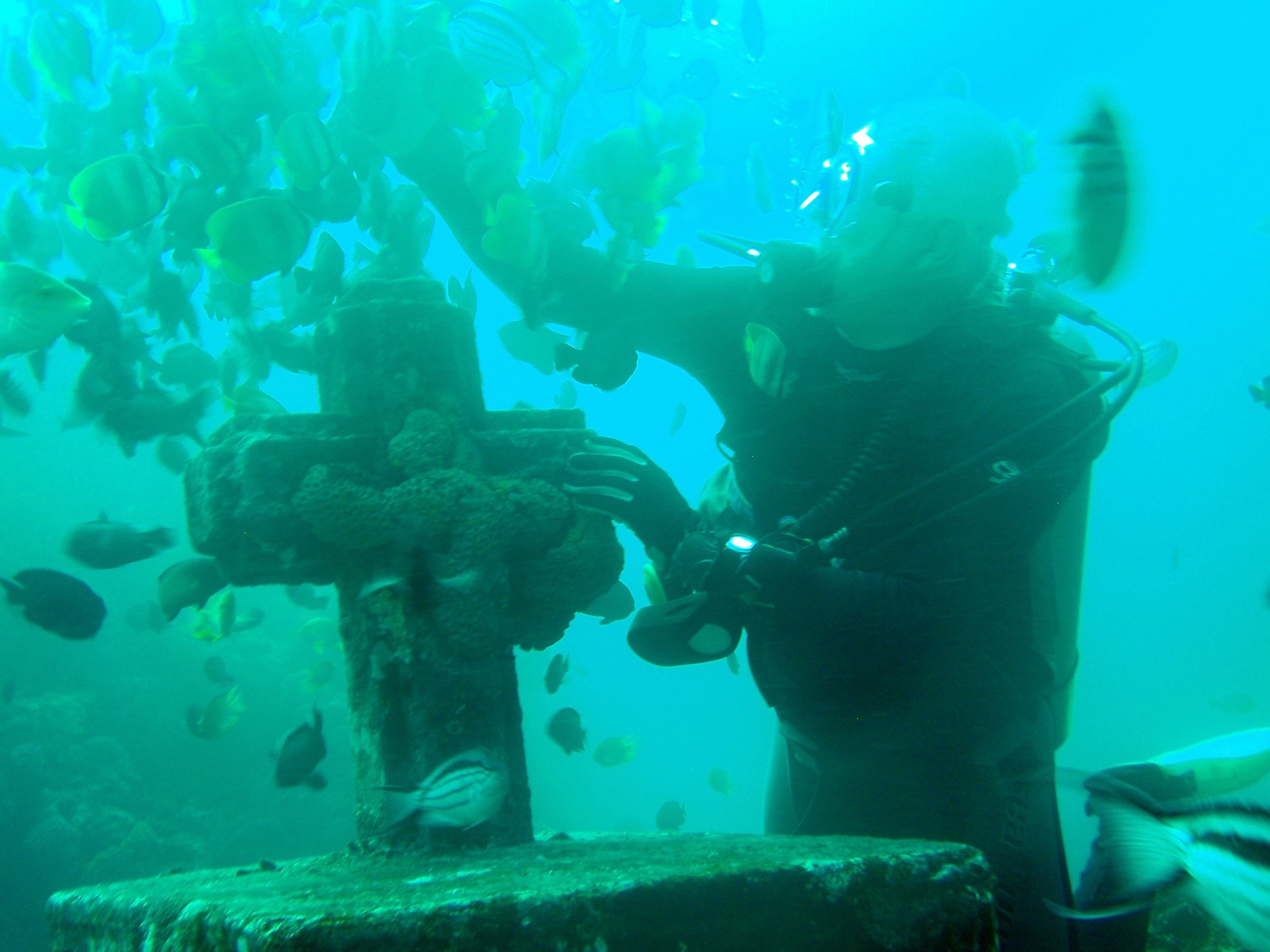 Feeding the fish at Cathedral.