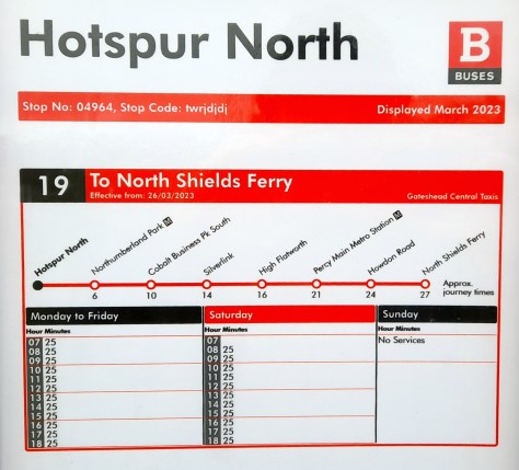 The journey was quite interesting since it took us through areas of North Tyneside (south of where we live) that we have never explored. It was a little bit longer than we anticipated, since we did not recognise the ferry bus stop, and so stayed on board while the bus completed its route around North Shields before returning to the ferry stop.