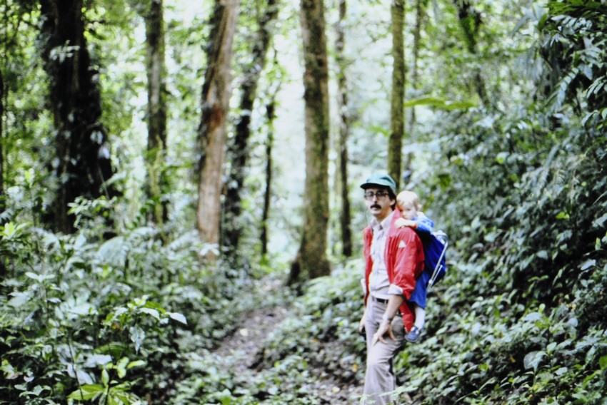 Carrying Hannah on my back at Monteverde