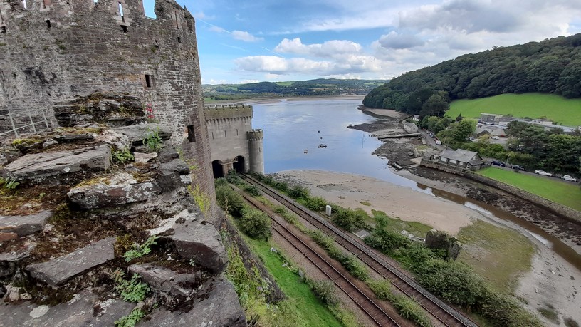 Entrance to the railway bridge seen from the walls of Conwy Castle