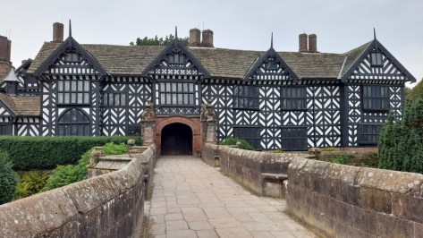 Speke Hall, a National Trust property on the eastern outskirts of Liverpool (right next to Liverpool John Lennon Airport, built on former Speke estate land) is a typical half-timbered, moated Tudor manor house. Although the moat has long since dried up.