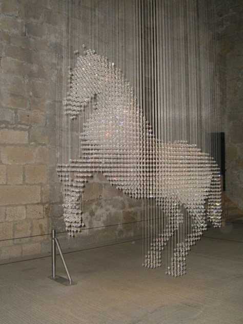 Having no furniture to display, Belsay Hall has become an excellent venue for art exhibitions, such as the Lucky Spot by Stella McCartney made from thousands of Swarovski crystals suspended from the ceiling of the Great Hall of the Castle, which we viewed in July 2009.