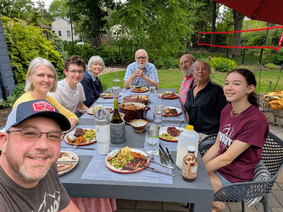Michael had been smoking several racks of pork ribs for about six hours, and his father Paul and partner Marsha joined us for a delightful evening meal on the patio.
