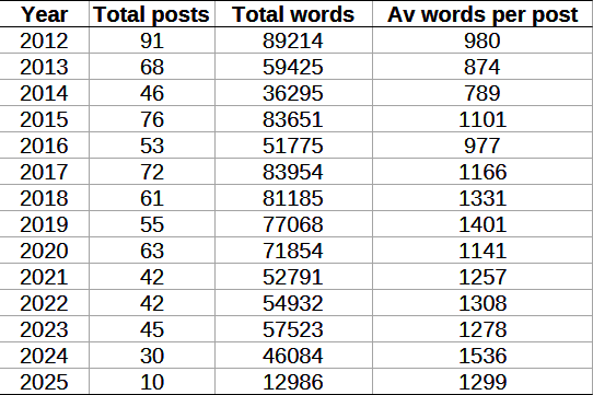 This post is number 755. I can’t quite believe it. That’s an average of just under five posts per month, a total of around 859,000 words, and an average of 1100 words per post! There are more than 18,000 media items (photos, videos, and maps). Most of the photos are mine.