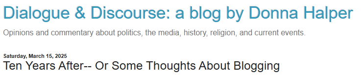 A few days ago I came across this post by Donna Halper (media historian, author, professor, public speaker, former rock & roll deejay best known for having discovered the rock bandRush) in which she described how and why she began blogging ten years ago. Just click on the red box (and others) below.