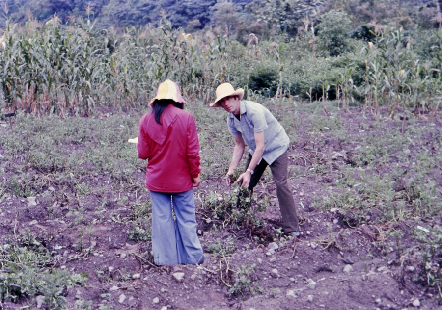 With Jack Hawkes in the CIP potato germplasm collection field, in Huancayo, central Peru (alt. 3100 masl) in January 1974.
