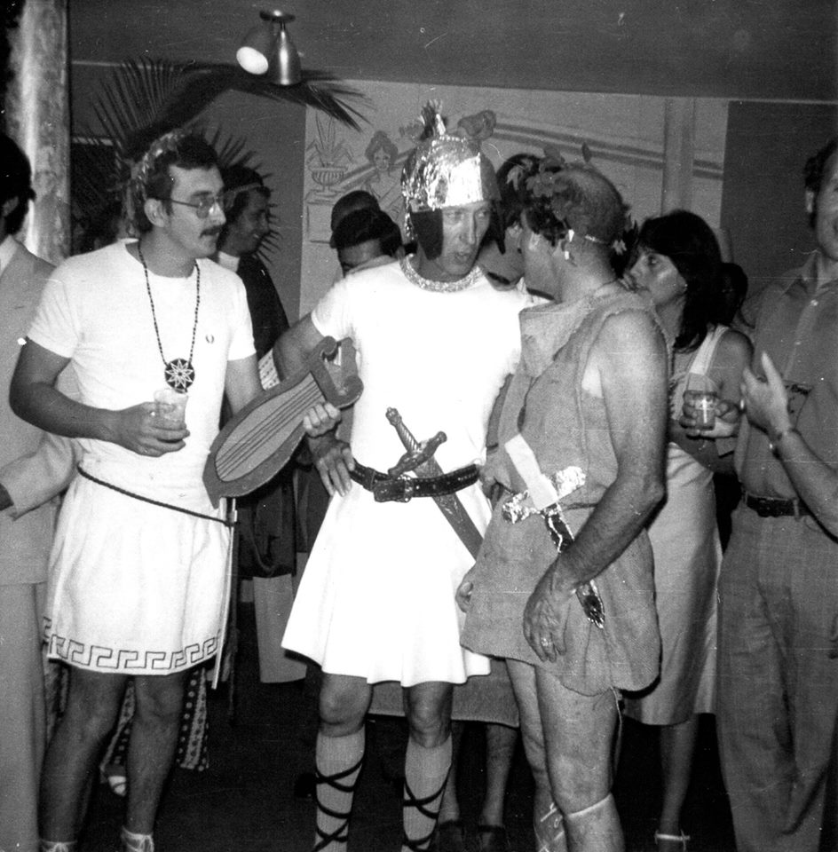 All work and no play . . . Each December, the Plant Biology Christmas party was usually held at Winterbourne House. For several years, we organized a pantomime, written and produced by one of the graduate students, Wendy (I don’t remember her surname). These were great fun, and everyone could let their hair down, taking the opportunity for some friendly digs at one staff member or another. In the photos below, I played the Fairy Godmother in a 1987 version of Cinderella, and on the right, I was the Grand Vizier in Aladdin, seen here with graduate student Hilary Denny as Aladdin. In the top left photo, kneeling on the right, and wearing what looks like a blue saucepan on his head, is Ian Godwin, a postdoc from Australia for one year. Ian is now Professor of Crop Science at the Queensland Alliance for Agriculture and Food Innovation. To Ian’s left is Liz Aitken, also a postdoc at that time who came from the University of Aberdeen, and now also a Professor at the University of Queensland.