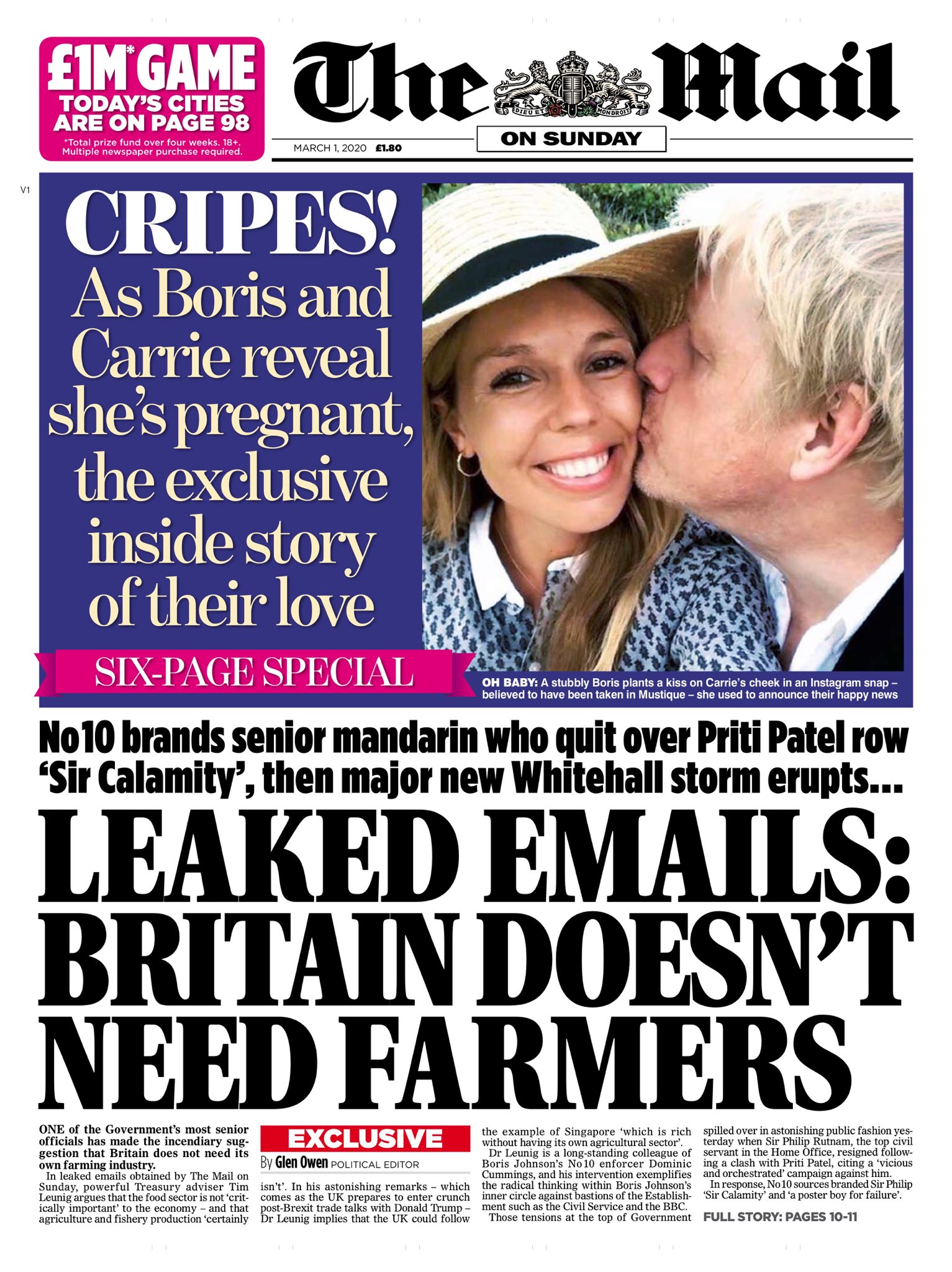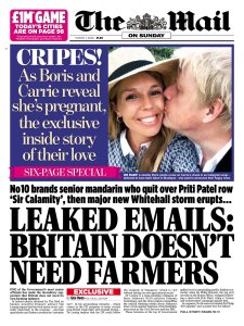 But what tipped me over the edge from optimism to pessimism yesterday (1 March, the first day of meteorological Spring, when we should be thinking more positively) was the adulation in the Tory-supporting press over the news that Johnson and his fiancée Carrie Symonds (presumably his former mistress since he is/was still married to his second wife of 27 years) were expecting a baby later this year. Can you imagine, The Mail on Sunday published an ‘exclusive’ six page special? Could this really be more important news than anything else that’s going on right now? [1]