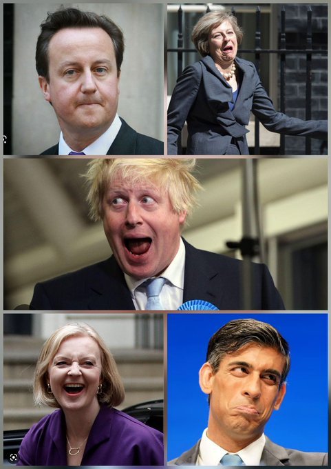 Theresa May replaced Cameron after he lost the Brexit referendum, and she in turn was ousted by clown Boris Johnson. Liz Truss lasted just 50 days (the shortest-serving Prime Minister in British history) after Johnson departed in ignominy, when she almost crashed the economy with her Chancellor of the Exchequer, Kwasi Kwarteng.