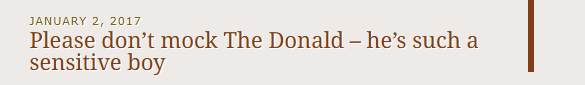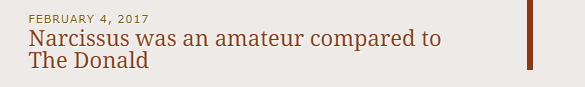 Why? Well, from my perspective (I’m neither a US citizen nor resident), Donald Trump has shown, by his behaviour since his inauguration just four weeks ago, that he himself does not respect the Office of the President of the United States. Furthermore, he continues to be egregiously offensive to long-term allies or individuals. Take, for example, his denigration of the Prime Minister of Canada as ‘Governor Trudeau’. Decidedly un-presidential!