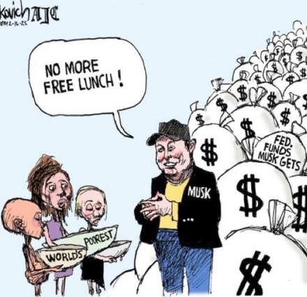 Which brings me on to a final point. There’s something particularly obscene that the world’s richest man is holding sway over the lives of hundreds of thousands of federal employees (and the nation at large) even while his own companies receive federal grants and contracts reported to be in excess of USD13 billion. I wonder if he’s going after those agencies from which he receives such business largesse? Talk about conflict of interest.