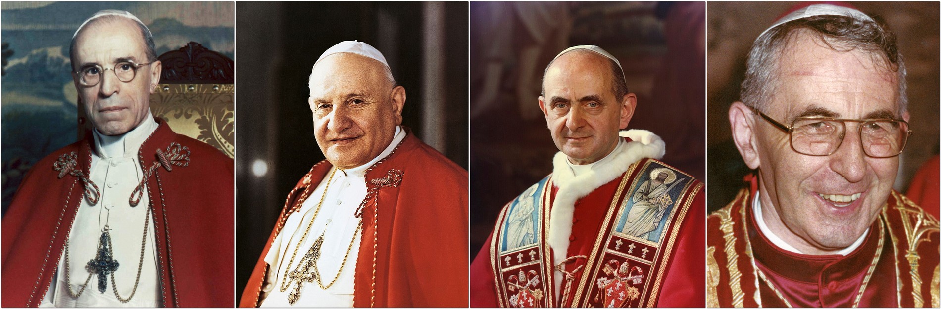 L-R: Pius XII, John XXIII, Paul VI, and John Paul I