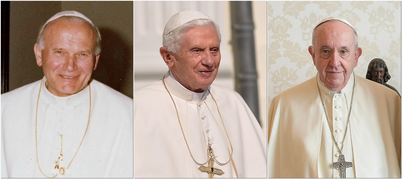L-R: John Paul II, Benedict XVI, and Francis.
