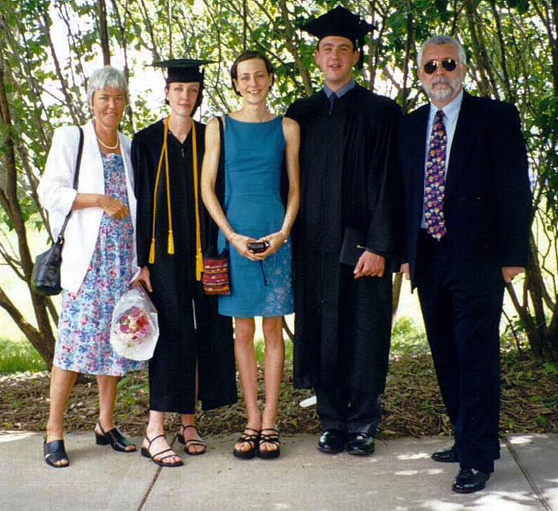 Hannah’s graduation in May 2000 at Macalester College, with Philippa and Michael (Hannah’s boyfriend, now her husband).